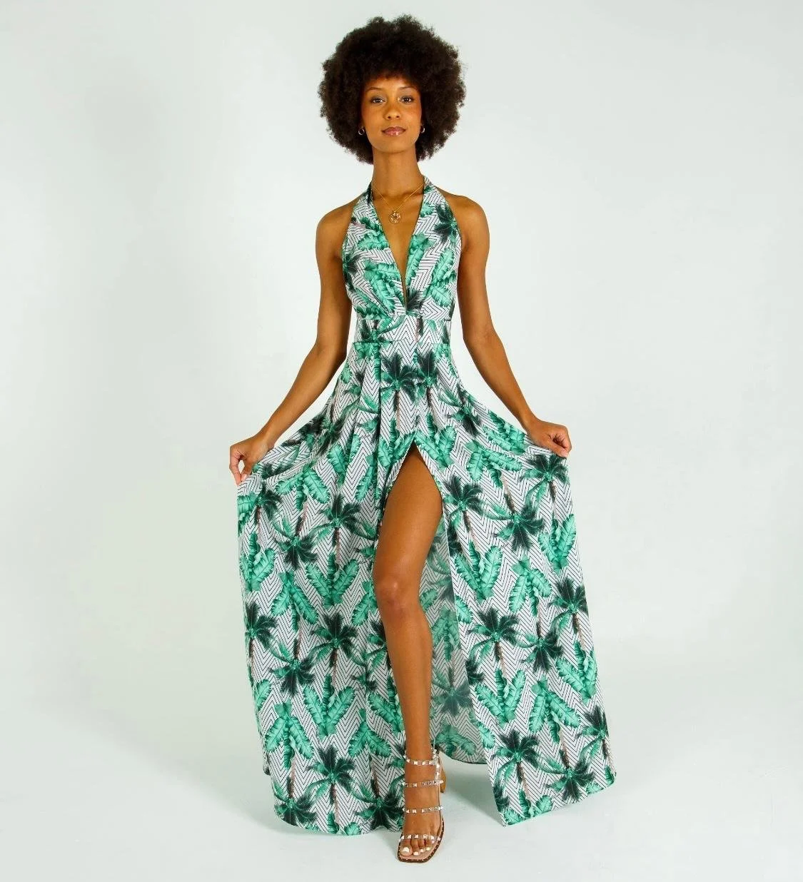 With an adjustable design that fits sizes 38 to 42, this dress adapts comfortably to the body thanks to its adjustable waist ties that shape and define the fit. The subtle front neckline and open-back detail add charm and freshness, making it perfect for warm days and special evenings.